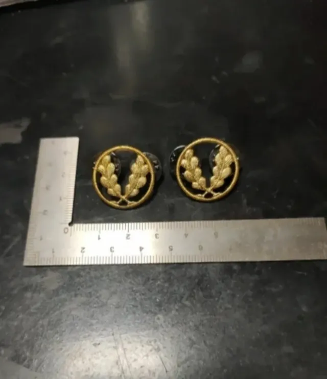 Coppia di fregi vintage dell'Aeronautica Militare, non più in uso. - Design con rami di quercia. - Colore dorato.