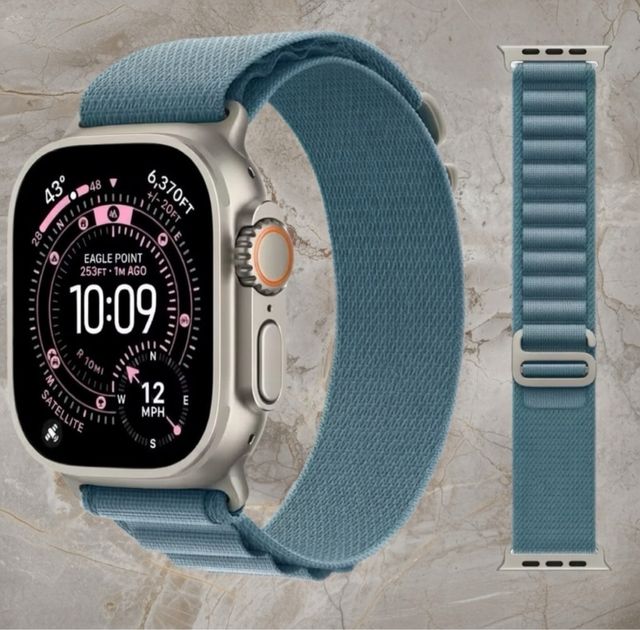 Product detailsCorrea Premium Loop Alpine en color New Azul claro “ nuevo color exclusivo Ultra 3 “ calidad Premium compatible con Apple Watch de 42/44/45/46 Mm serie 3/4/5/6/7/8/9/10/Se Ultra 1/2/3. Con conector y hebilla new color titanio