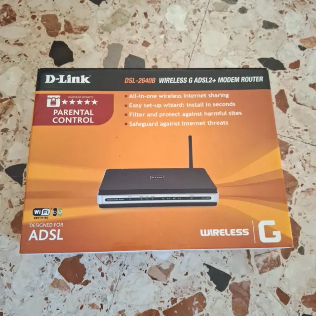 Modem router D-Link DSL-2640B Wireless G ADSL2+. - All-in-one wireless Internet sharing - Easy set-up wizard: install in seconds - Filter and protect against harmful sites - Safeguard against Internet threats - WiFi CERTIFIED bg - Designed for ADSL
