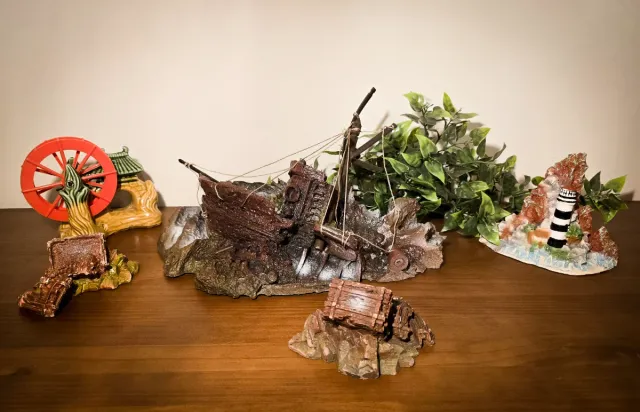 Product detailsVendo conjunto de decorações para aquário, todas em ótimo estado. Inclui várias peças temáticas: