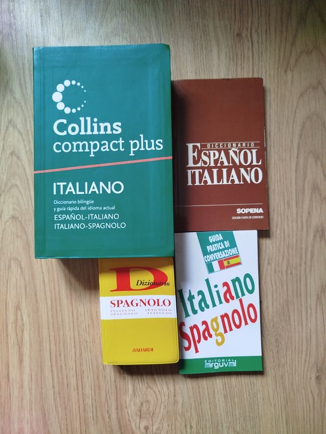 Diccionarios italiano: Collins compact plus 8€ Diccionarios sopena 3€ (leve golpe en la portada) Avallardi 2,5€ Guia de conversación 1€