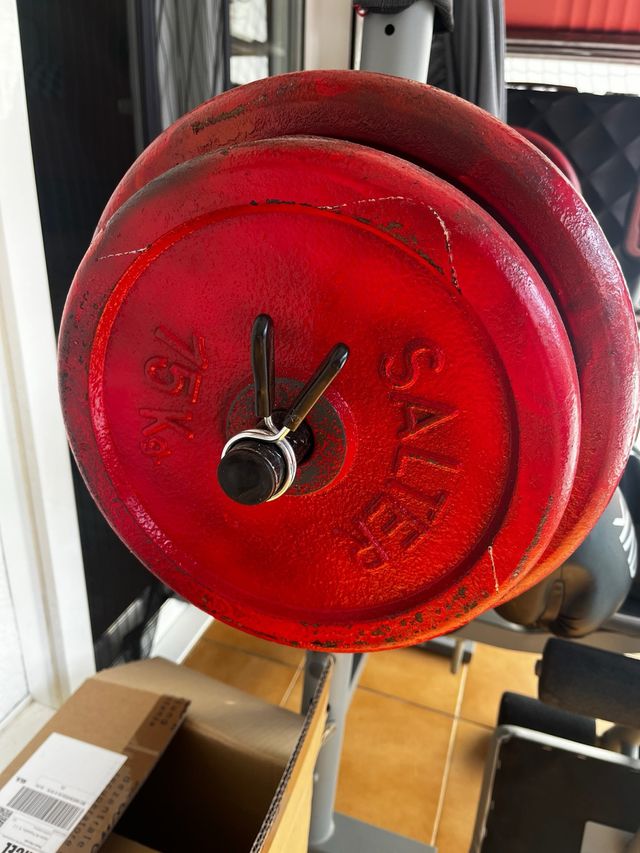 Discos de Pesas Salter 10,15,25 Kg + Banco, barras