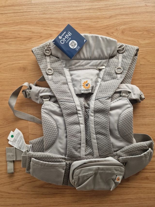 Product detailsCanguru Ergobaby Omni Breeze em cinza, ideal para o transporte confortável do bebé.