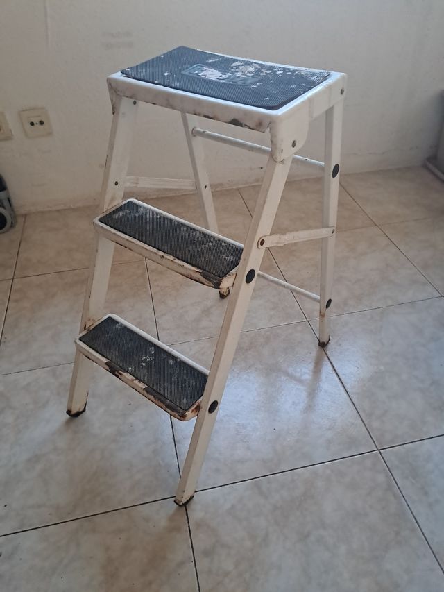 Product detailsEscalera plegable, altura 65 cm, robusta aunque tiene su uso y es funcional, tiene óxido (se ve en las fotos)pero hace su función ideal pará pintar una habitación, pequeñas tareas del hogar, mantenimiento terraza toldos cambiar bombillas, huerto, mudanza, traslado etc.