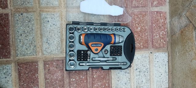 Product detailsvendo estuche muy completo 52p, con vasos de 1/4 y 3/8 con sus correspondientes acoples y alargadores para el destornillador carraca,con puntas destornillador , estrella , planos , Allen, torx ... , ideal para llevar en el coche , por casa para bricolaje , automoción . está en Arroyo del Ojanco