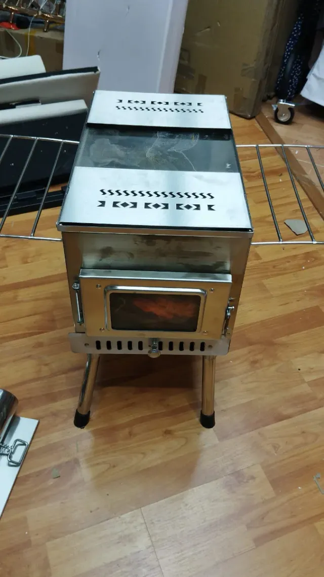 Mini Estufa a leña o carbón metal con ventana .