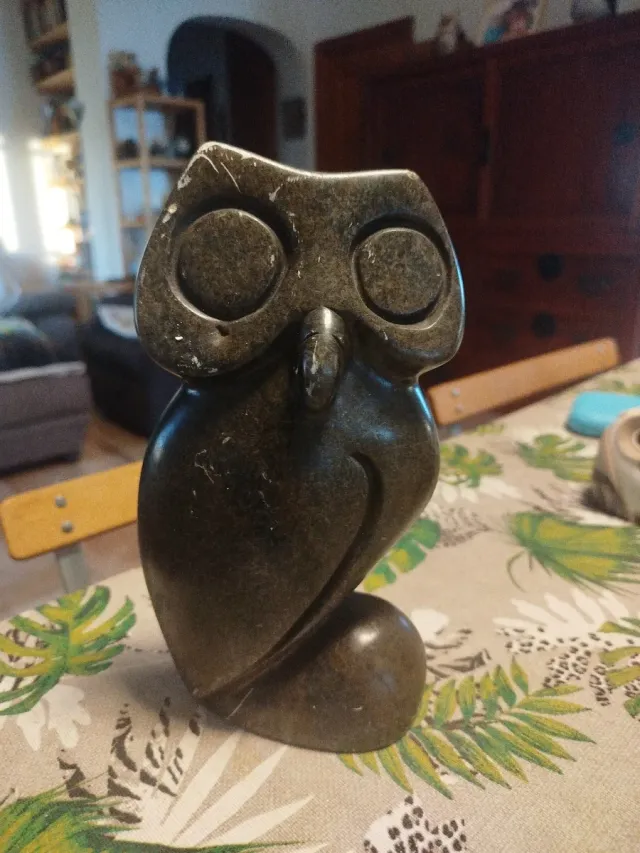 Figura decorativa de búho, ideal para coleccionistas. Altura: 21cm Señales de uso (ver fotos) - Material: Piedra. - Diseño estilizado.