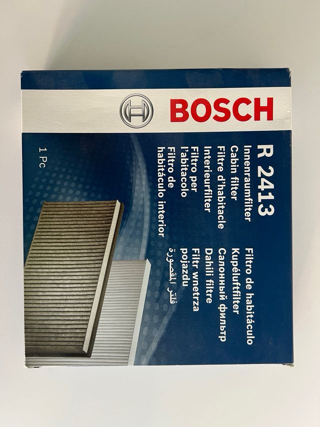 • El filtro para el habitáculo de carbón activo Bosch protege el sistema de aire acondicionado del polvo y la suciedad.