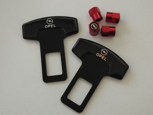 Duas fivelas de cinto de segurança Quatro tampas para válvulas de pneus Opel