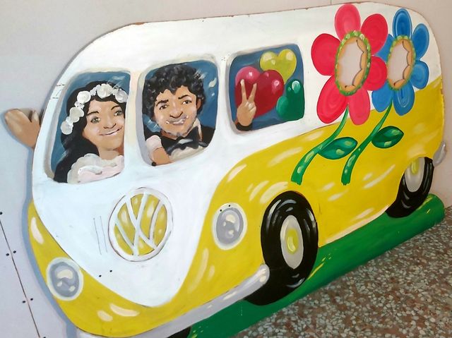 Product detailsPrecioso fotomatón de boda con forma de furgoneta Volkswagen, pintado a mano. Ideal para eventos o decoración.
