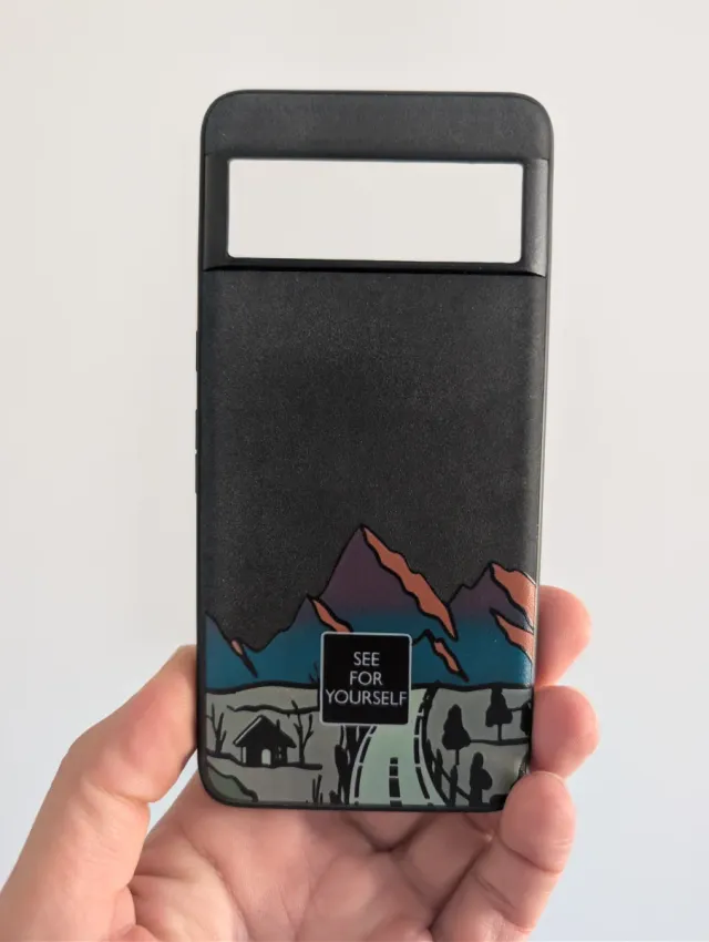 Product detailsFunda protectora para Google Pixel 8 Pro con un diseño de paisaje montañoso y carretera.
