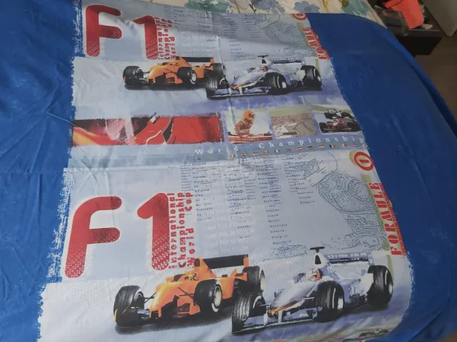 Funda nórdica infantil con diseño de Fórmula 1. - Estampado de coches de carreras F1. - Incluye diseño de circuitos y banderas. - Colores vibrantes.