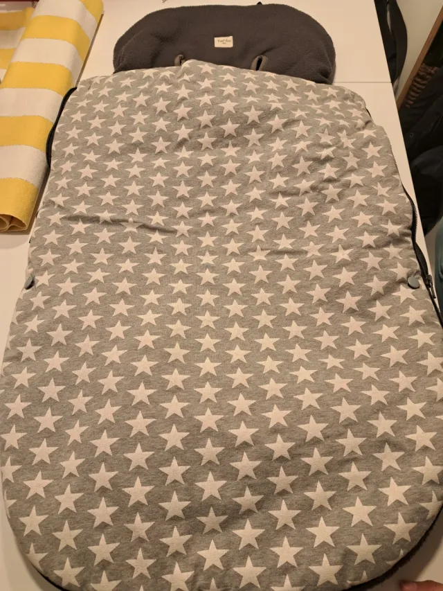 Product detailsFunda para silleta de bebé de la marca Fundas Barcelona. Presenta un diseño divertido con estrellas blancas sobre fondo gris.