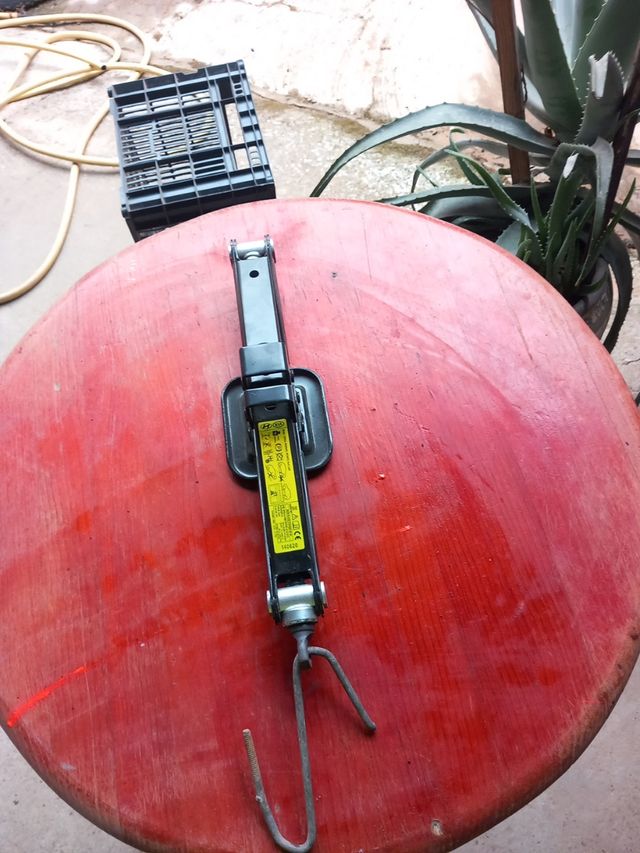 Gato mecánico para coche, ideal para reparaciones o cambios de neumáticos. - Mecanismo de tijera. - Incluye manivela para accionamiento. - Base estable.