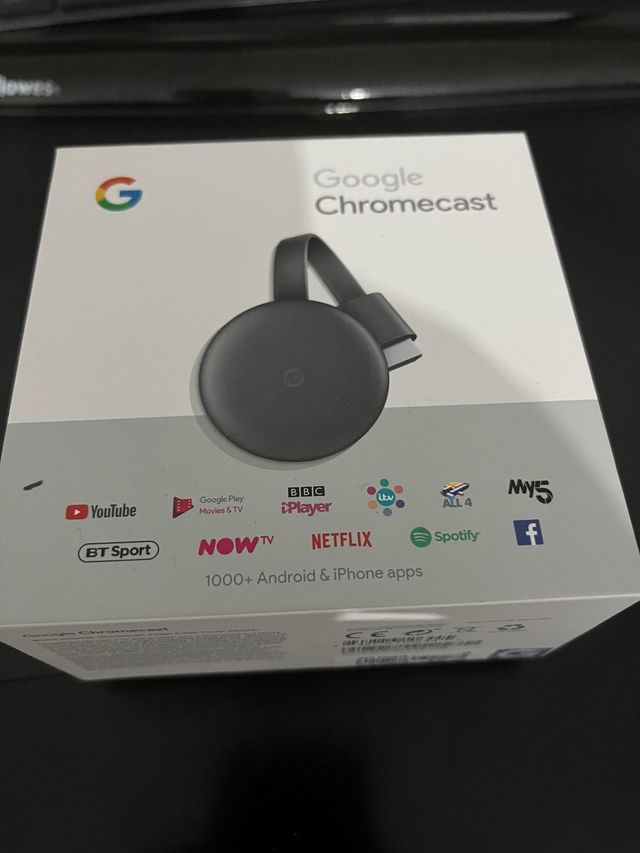 Chromecast seminuevo. Funciona perfectamente. - Dispositivo Chromecast de Google. - Incluye cable HDMI y adaptador de corriente. - Caja en perfecto estado.