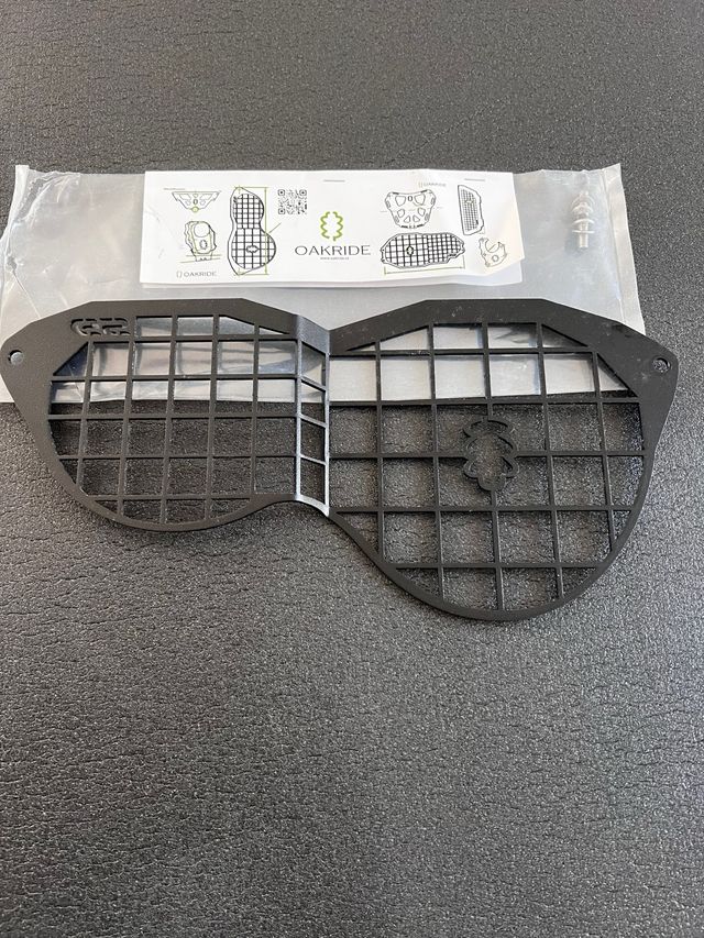 Grelha protetora para o farol de uma BMW GS 1150 Adventure. - Material: Metal - Cor: Preto - Design em grade