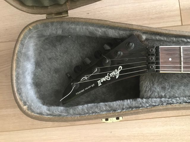 Guitarra eléctrica Aria Pro II, modelo XR Series. - Diseño distintivo. - Acabado negro. - Incluye funda.
