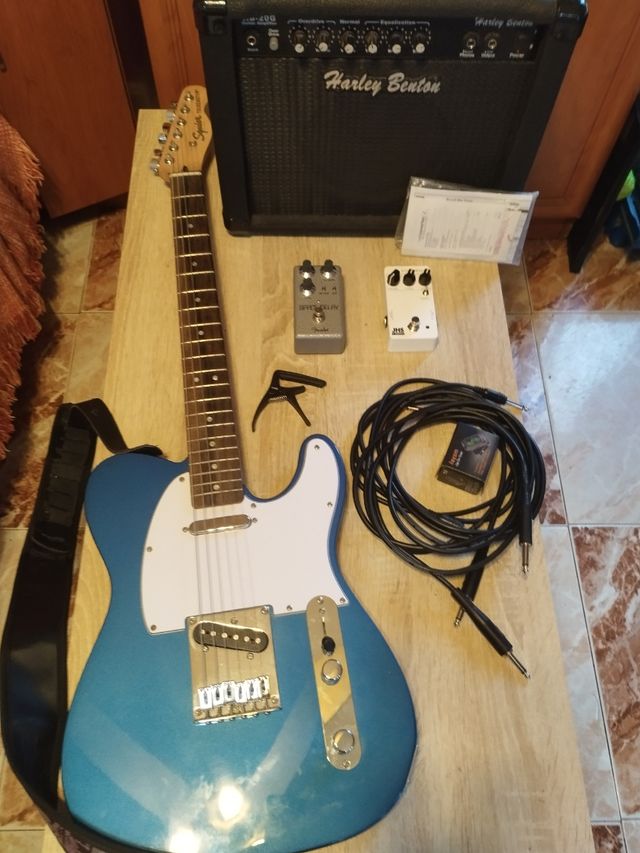 Product detailsGuitarra electrica fender telecaster squiercon funda acolchada,ampli harley benton , pedales efectos compresor jhs3,delay+chorus fender,cables ,afinador ,todo con dos meses de uso,suena como dios costo 600eur vendo por 420. mando video,no envio,tlf 617.70.54.79.washap..en malaga capital