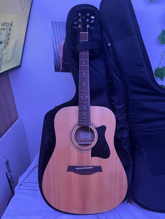 la guitarra esta en perfecto estado solo tiene las cuerdas a cambiar sin roces ni peladuras .