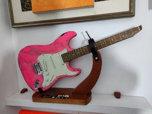 Guitarra eléctrica sobre jamonero – Escultura pop