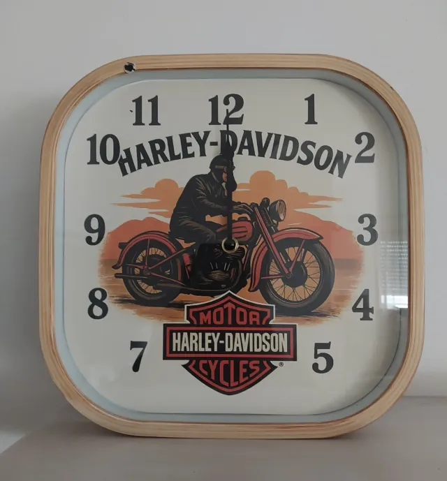 Product detailsRelógio de parede com design inspirado na Harley-Davidson.