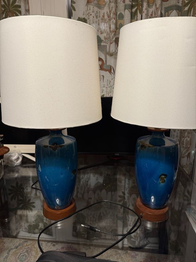 Juego 2 Lámparas Mesa Cerámica y Madera