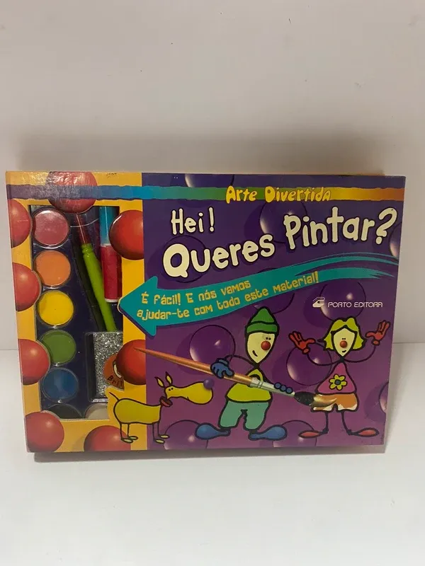 Kit de pintura Arte Divertida da Porto Editora. Inclui tudo o que é necessário para começar a pintar. - Paleta de aguarelas com várias cores. - Pincéis. - Outros materiais de arte.
