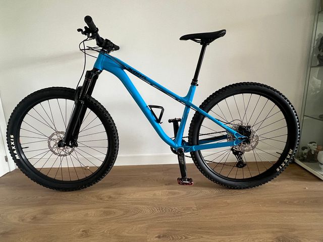 Product detailsKona Honzo DL. Aluminio. Ruedas de 29”. Talla L. Horquilla de 140mm. 12 velocidades. Shimano Deore. Cassete 11-50th. Plato de 32 dientes. Frenos hidráulicos Shimano. Llantas WTB ST i30 TCS 2.0. Cubierta delantera: 29x2,50. Cubierta trasera: 29x2,40. Ruedas tubelizadas. Tija telescópica Diámetro: 31,60 mm Tipo: TranzX +RAD, S - 150mm; M - 170mm; L/XL - 200mm. En perfecto estado, unas 10 salidas solo por pista, sin roces ni desperfectos. Envío a cargo del comprador. Mando fotos/vídeos a interesadxs. Pedales Kona sin estrenar de regalo.