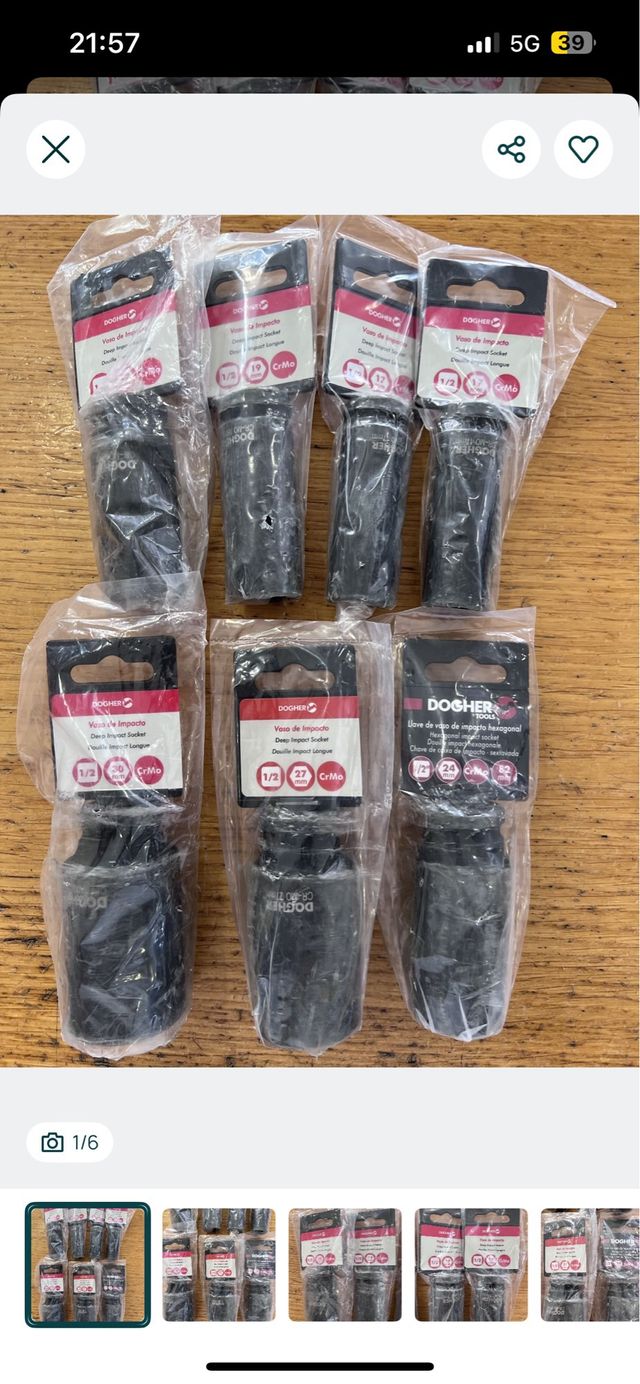Conjunto de 7 chaves de impacto da marca Dogher, em excelente estado. - Chaves de impacto. - Marca: Dogher. - Quantidade: 7 unidades.