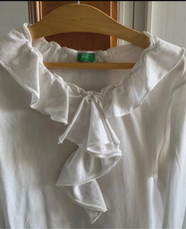 maglia bianca Benetton per bambina, taglia 10 anni. Presenta un grazioso volant sul davanti. - Colore bianco - Taglia 10 anni - Volant decorativo