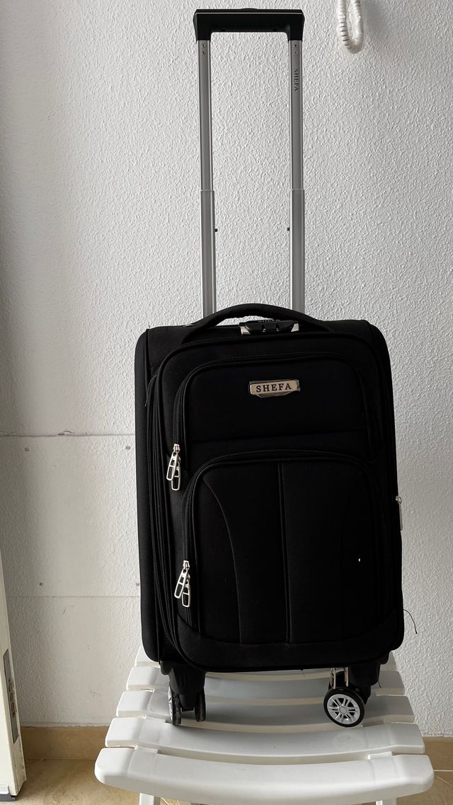 Product detailsMaleta de cabina en color negro, fabricada en tela y con capacidad para 10kg. Perfecta para viajes cortos.