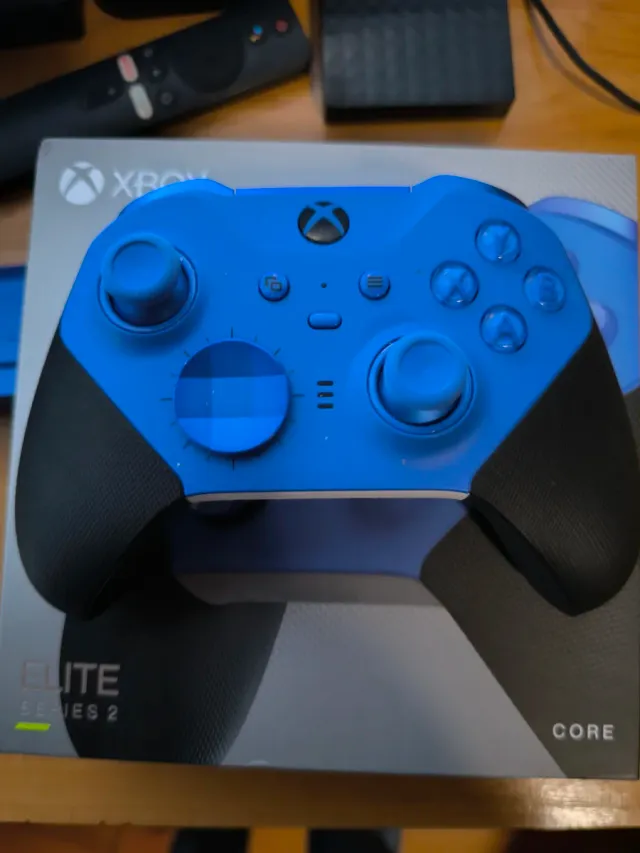 Product detailsMando inalámbrico profesional Xbox Elite Series 2 Core en color azul. Compatible con Xbox Series X|S, Xbox One y PC,está nuevo con garantía con Microsoft hasta septiembre de 2028, incluye juego de paletas traseras negras,con su caja cable azul original y herramienta de ajuste de los stick.