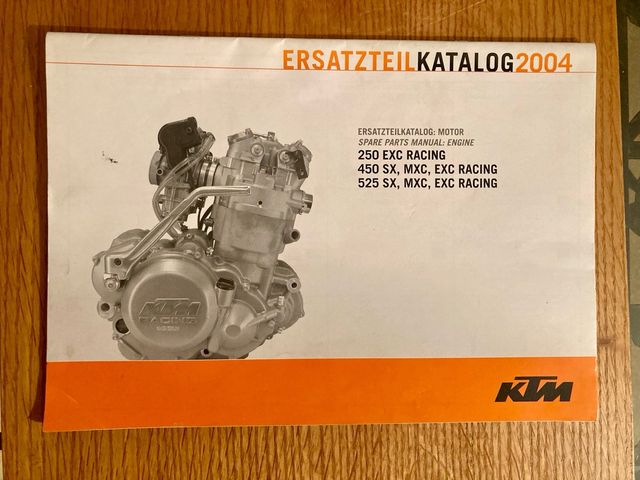 Product details2 libros Manuales originales del despiece de motores y batidores Parts List), KTM 250 4T EXC Racing, 450 4T SX, MXC, EXC Racing y 525 4T SX, MXC, EXC Racing. Todos del año 2004. Bien conservados, completos, sin roturas. Costa de 43 paginas, con todas las piezas de los motores y bastidores y sus correspondientes referencias.