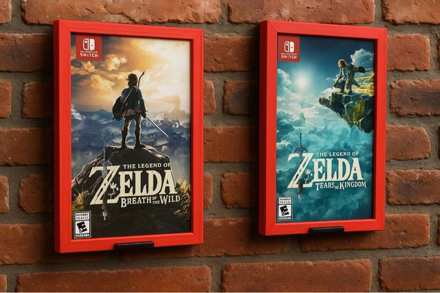 Marco de color rojo para exhibir tus videojuegos de Nintendo Switch. - Diseño moderno y llamativo. - Ideal para coleccionistas.