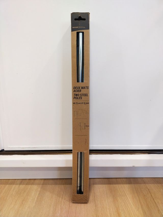 Nuevo, sin estrenar. Acero inoxidable. Longitud de un tramo: 48,75 cm | Longitud total: 195 cm | Peso de un tramo: 660 g | Peso total: 1,35 kg