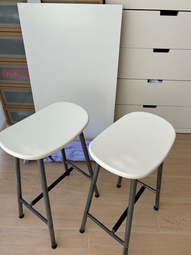 Product detailsSe venden mesa y dos taburetes blancos de Ikea. Son ideales para una cocina pequeña o una habitación.
