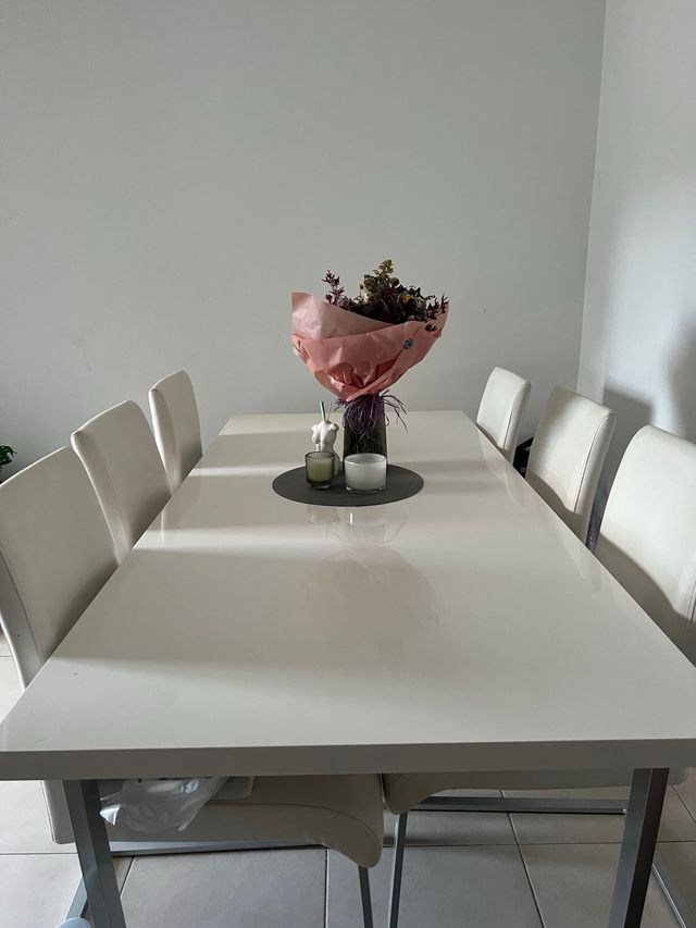 Mesa comedor y 6 sillas blancas