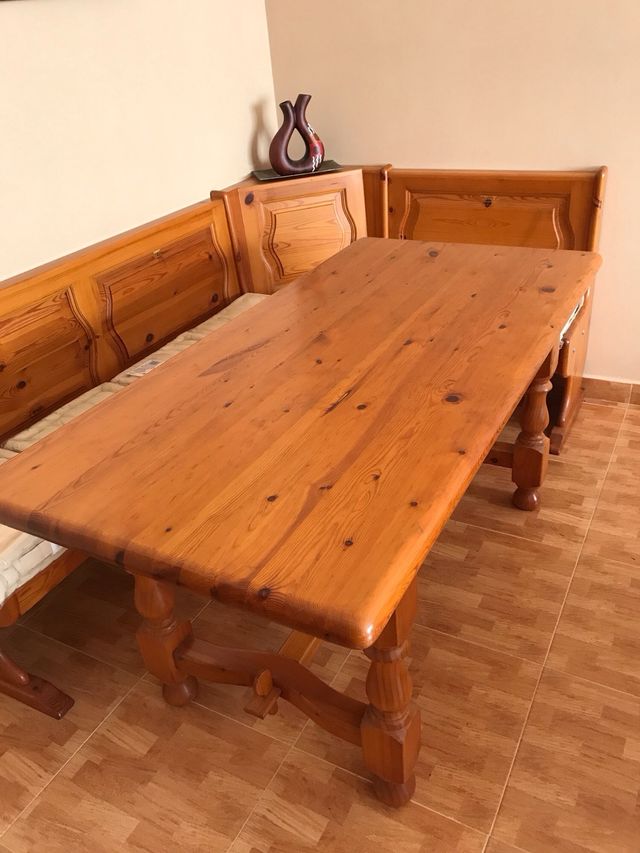 Mesa rústica y asientos . Madera maziza
