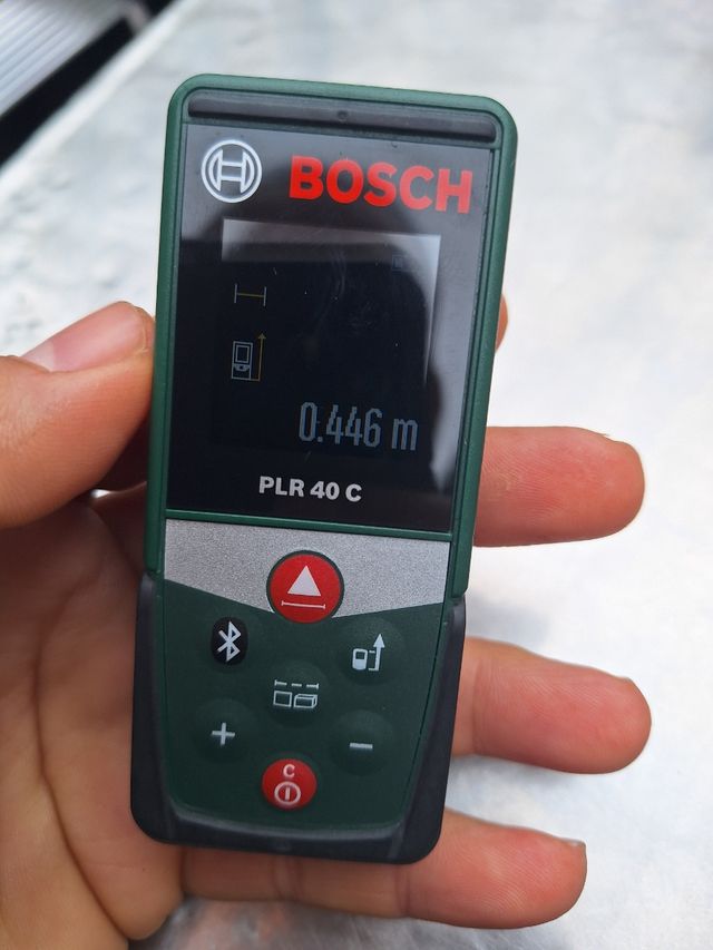 Product detailsBosch Professional Medidor Láser PLR 40 C (cámara integrada, alcance: hasta 40 m, robusto, +/-1,5 mm, 3 pilas AA, funda), verde , Bluetooth Product measurements