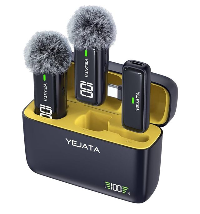 Product detailsVendo dos micrófonos inalámbricos YEJATA con estuche de carga. Son compactos y elegantes.