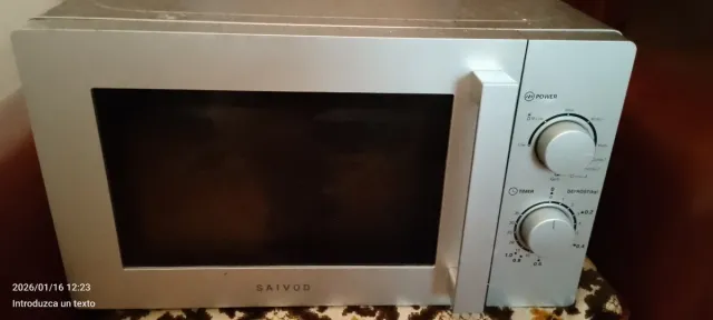 Product detailsMicroondas de la marca Saivod en color plata. Cuenta con mandos giratorios para ajustar la potencia y el tiempo.