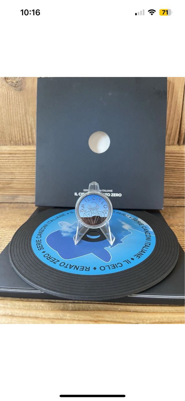 Product detailsMoneta commemorativa da 5 euro dedicata a Renato Zero, parte della serie Canzoni Italiane.