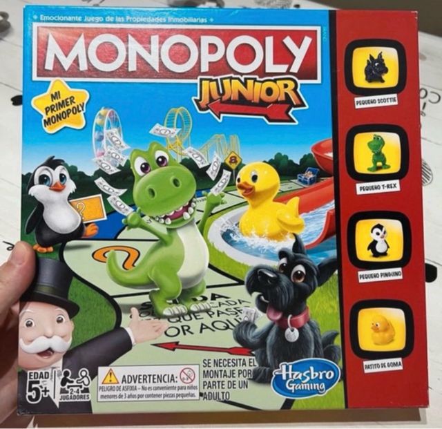 Product detailsJuego de mesa Monopoly Junior, perfecto para los más pequeños. Ideal para introducirles al mundo de las propiedades inmobiliarias de forma divertida.