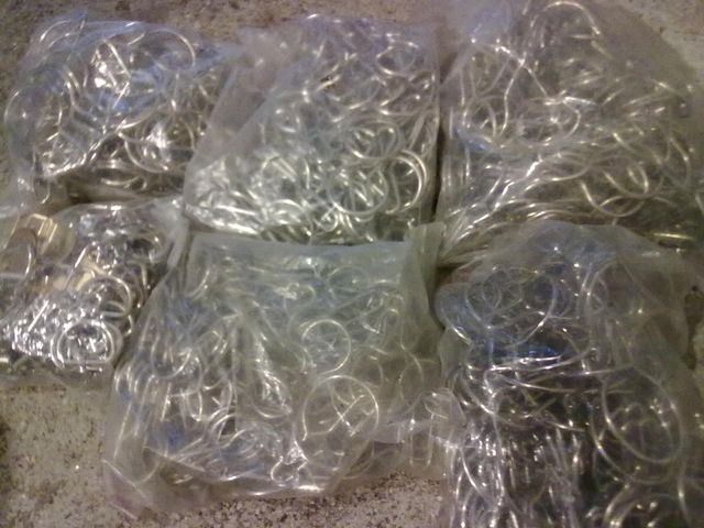 Mosquetones metálicos redondos, decenas de diferentes tamaños, nuevos y sin usar.
