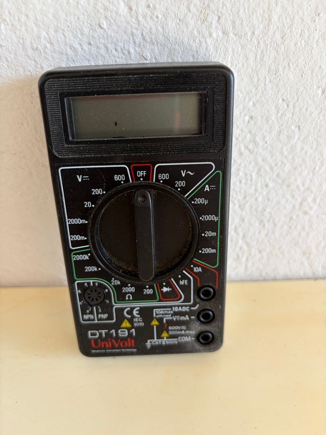 Multímetro digital UniVolt DT191 em bom estado. - Mede voltagem AC/DC, corrente e resistência. - Inclui pontas de prova. - Display digital.