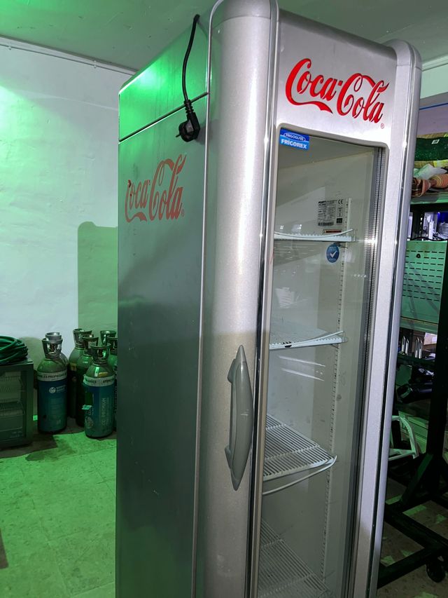 Product detailsSe vende nevera expositora vertical de Coca-Cola con 4 baldas ajustables. Perfecta para negocios, bares o para casa si eres fan de la marca. Funciona perfectamente, enfría rápido y está en muy buen estado tanto por dentro como por fuera. Iluminación en la parte superior y puerta de cristal para fácil visualización del interior.