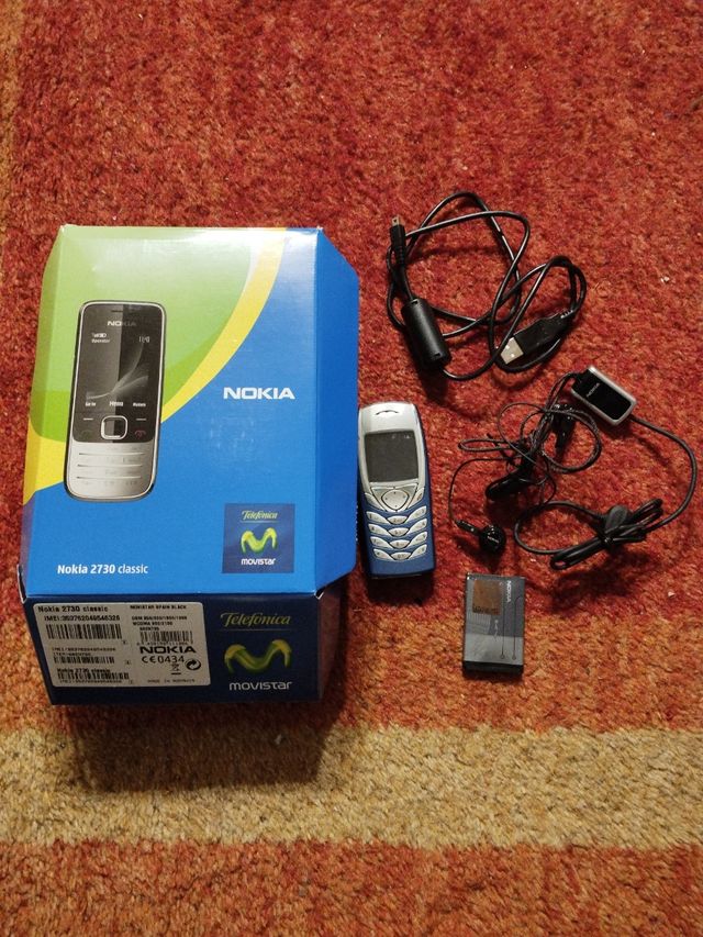 Teléfono con auriculares, cable de carga, caja original y batería hinchada. No sé si funciona o no. Ideal piezas y coleccionistas.