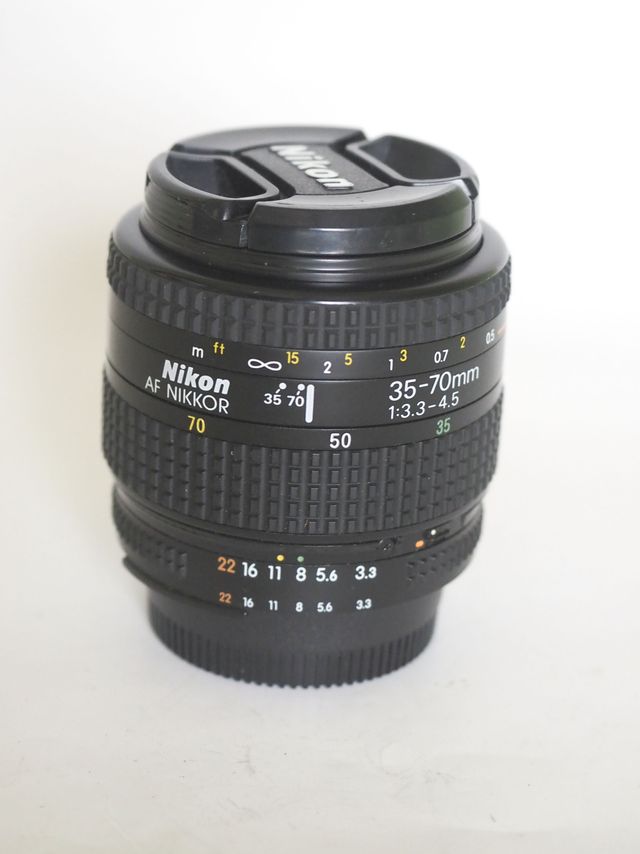 Product detailsObjetivo AF NIKKOR 35-70mm f/3.3-4.5 de Nikon en buen estado. Las lentes se ven limpias, sin hongos y sin rayas. El enfoque y el zoom van bien, ni blando ni duro. Pesa 327 gr.