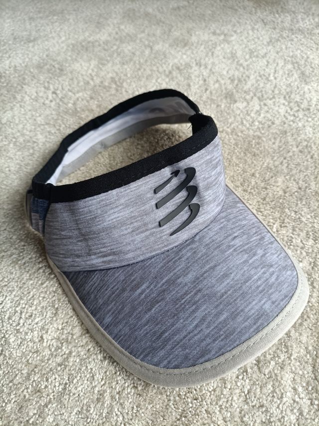 Pala Compressport em cinza, ideal para corrida. - Design moderno e funcional. - Logo da marca em destaque.