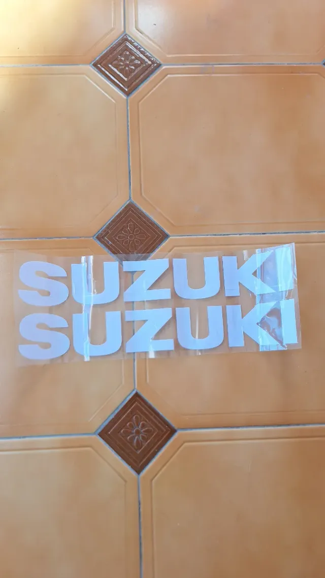 Dos pegatinas blancas con el logo de Suzuki. - Diseño del logo de Suzuki. - Color blanco. Miden 33cm de largo y 5 cm de alto cada una. Nunca usadas, nuevas a estrenar